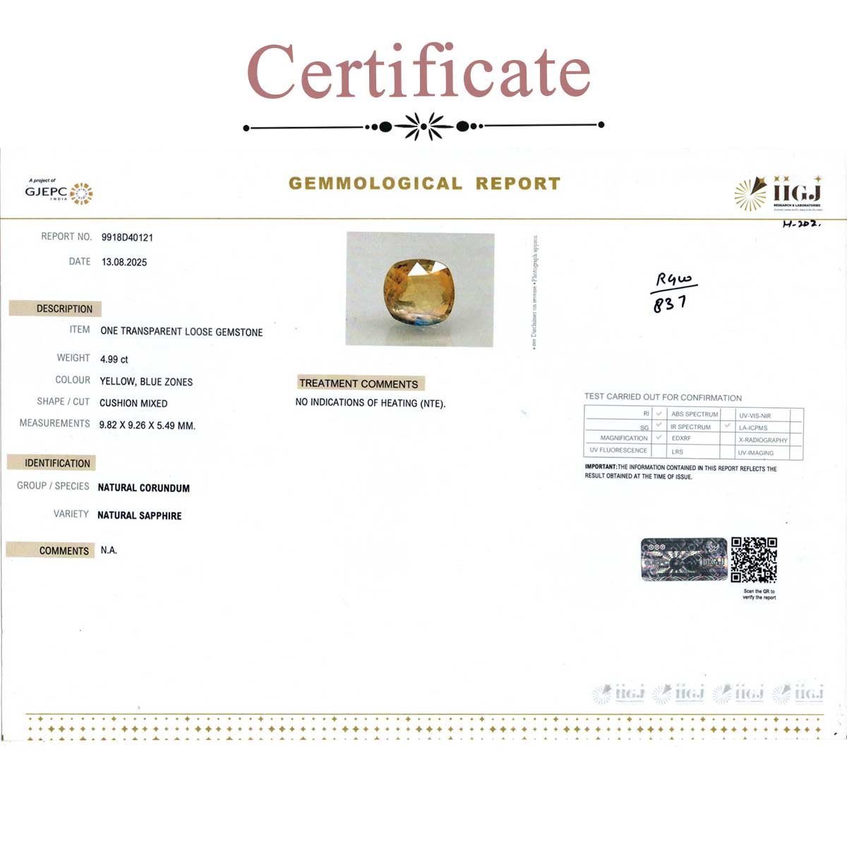 4.99 carats Bi-color Sapphire ( 5.54 ratti Pitambari )