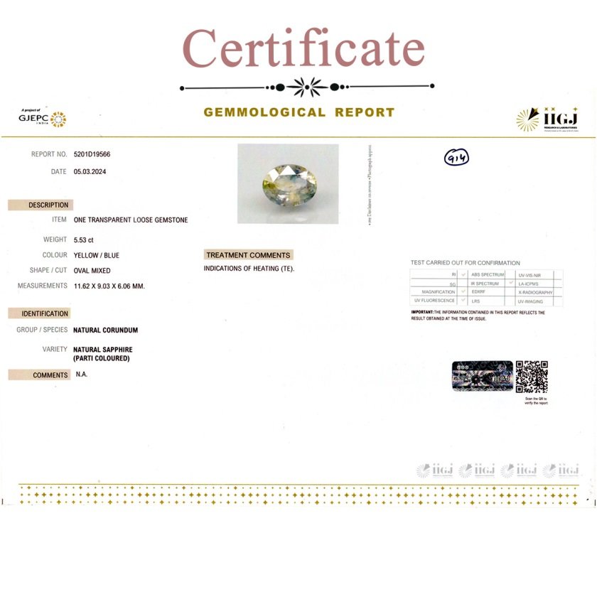 5.53 carats Bi-color Sapphire ( 6.14 ratti Pitambari Neelam ) Heated