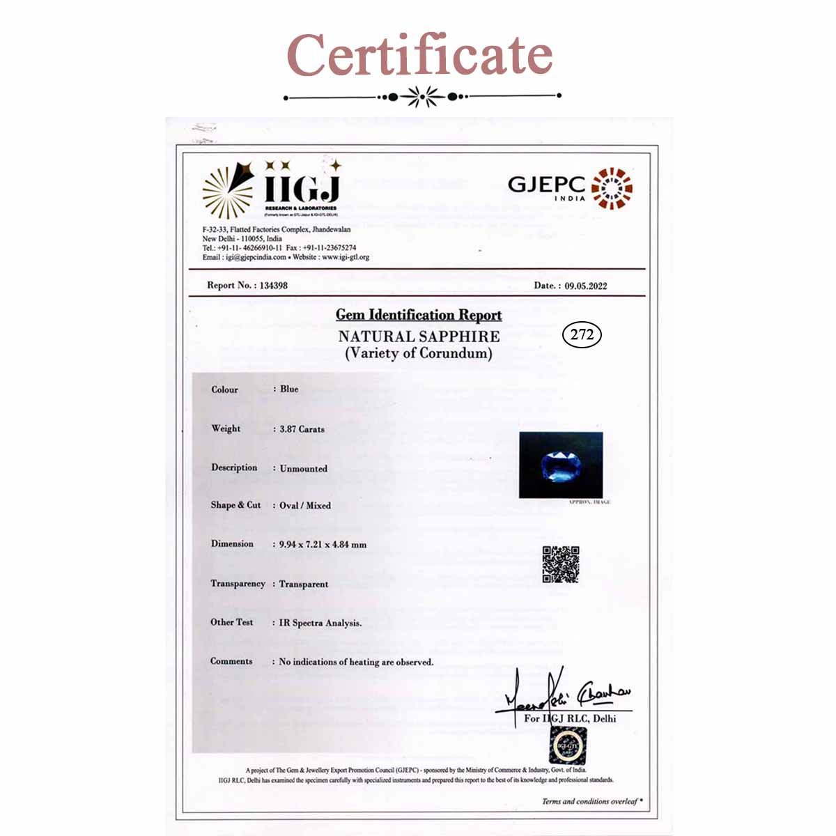 3.87 Carats Blue Sapphire ( 4.3 Ratti Neelam )