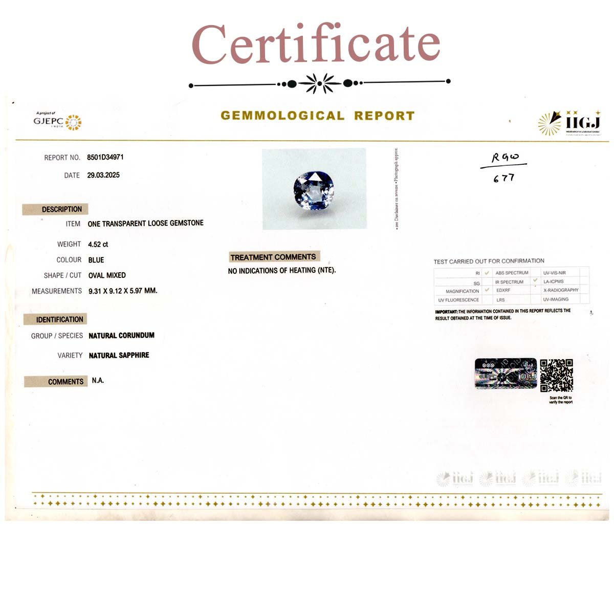 4.52 carats Blue Sapphire ( 5.02 ratti Neelam )