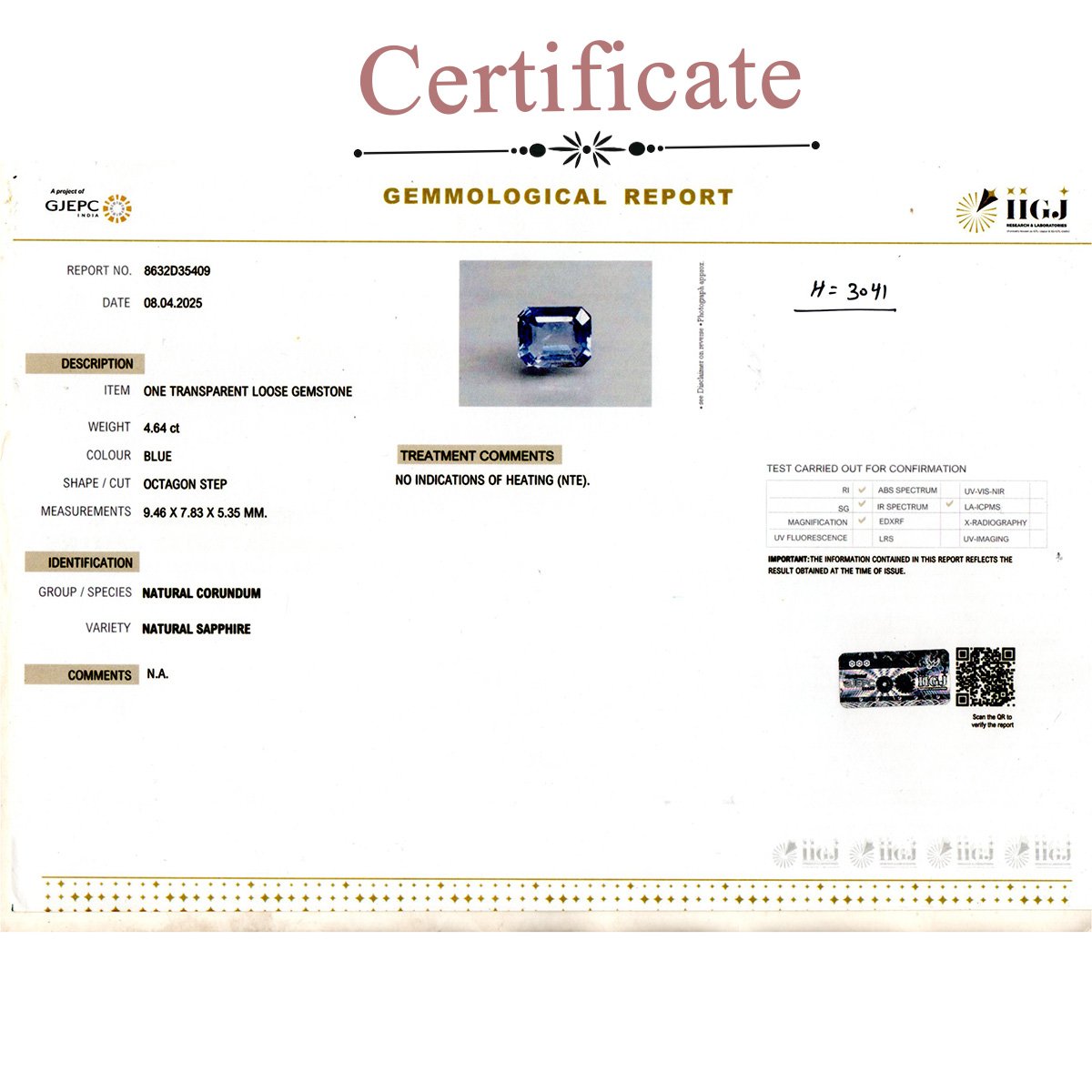 4.64 carats Blue Sapphire ( 5.16 ratti Neelam )