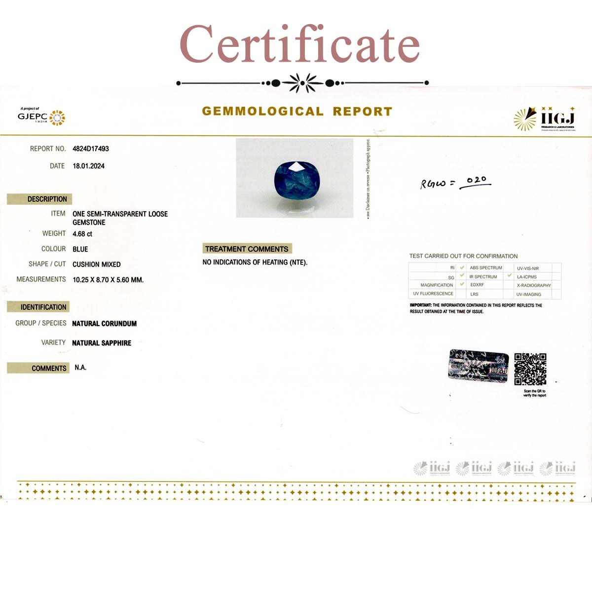4.68 carats Blue Sapphire ( 5.2 ratti Neelam )