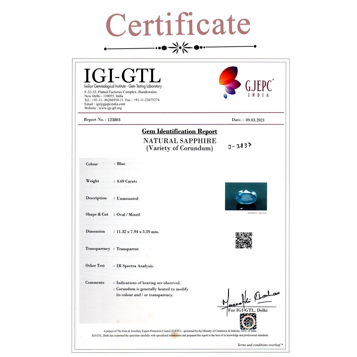 4.69 carats Blue Sapphire ( 5.21 ratti Neelam )