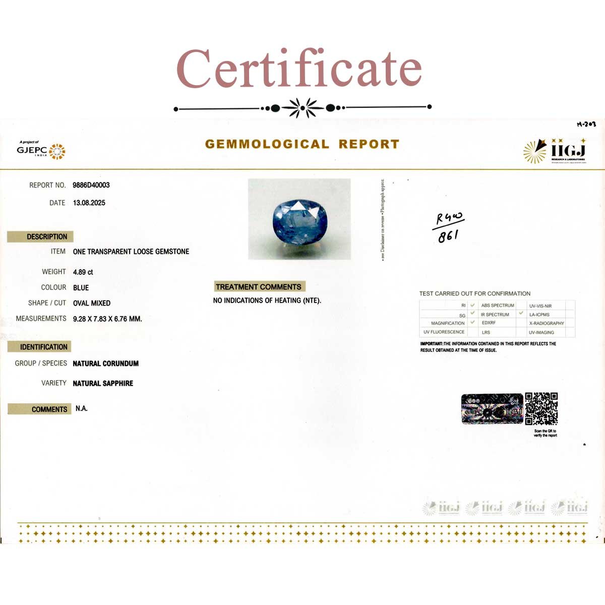 4.89 carats Blue Sapphire ( 5.43 ratti Neelam )