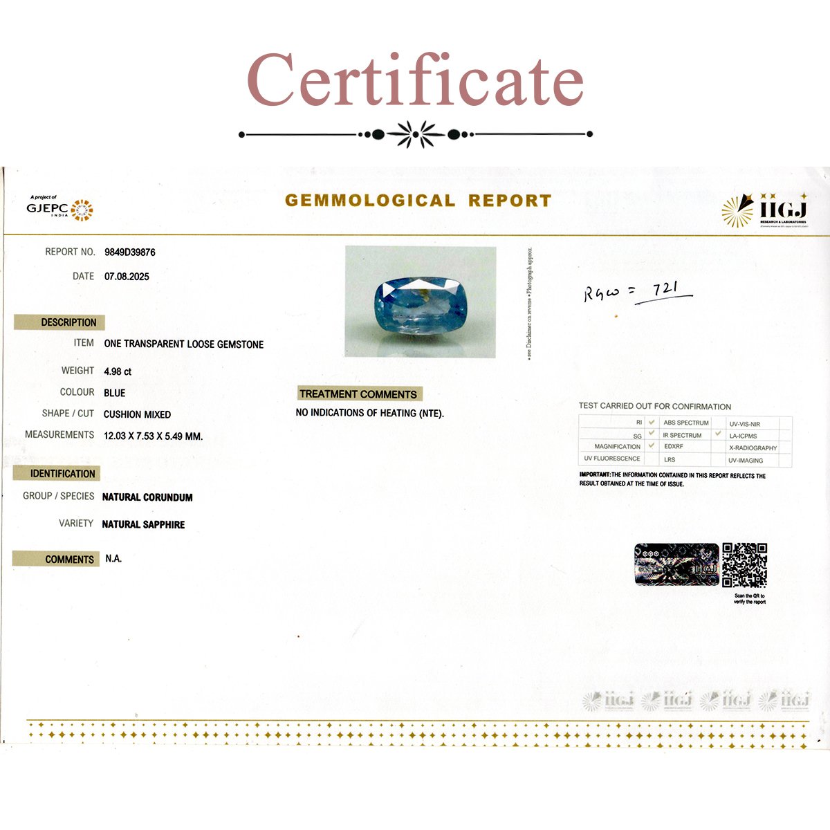 4.98 carats Blue Sapphire ( 5.53 ratti Neelam )