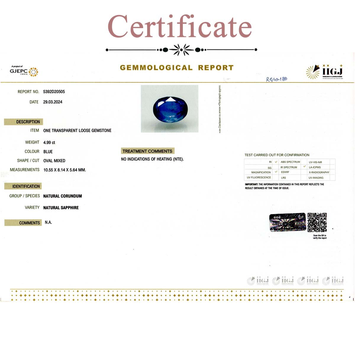 4.99 carats Blue Sapphire ( 5.54 ratti Neelam )