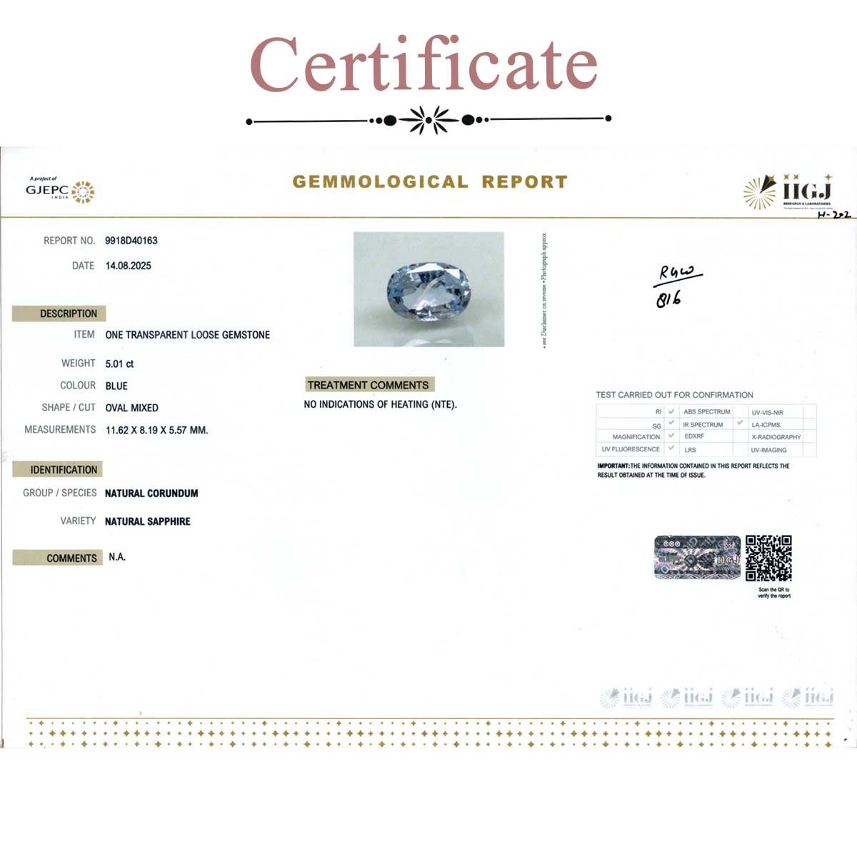 5.01 carats Blue Sapphire ( 5.57 ratti Neelam )