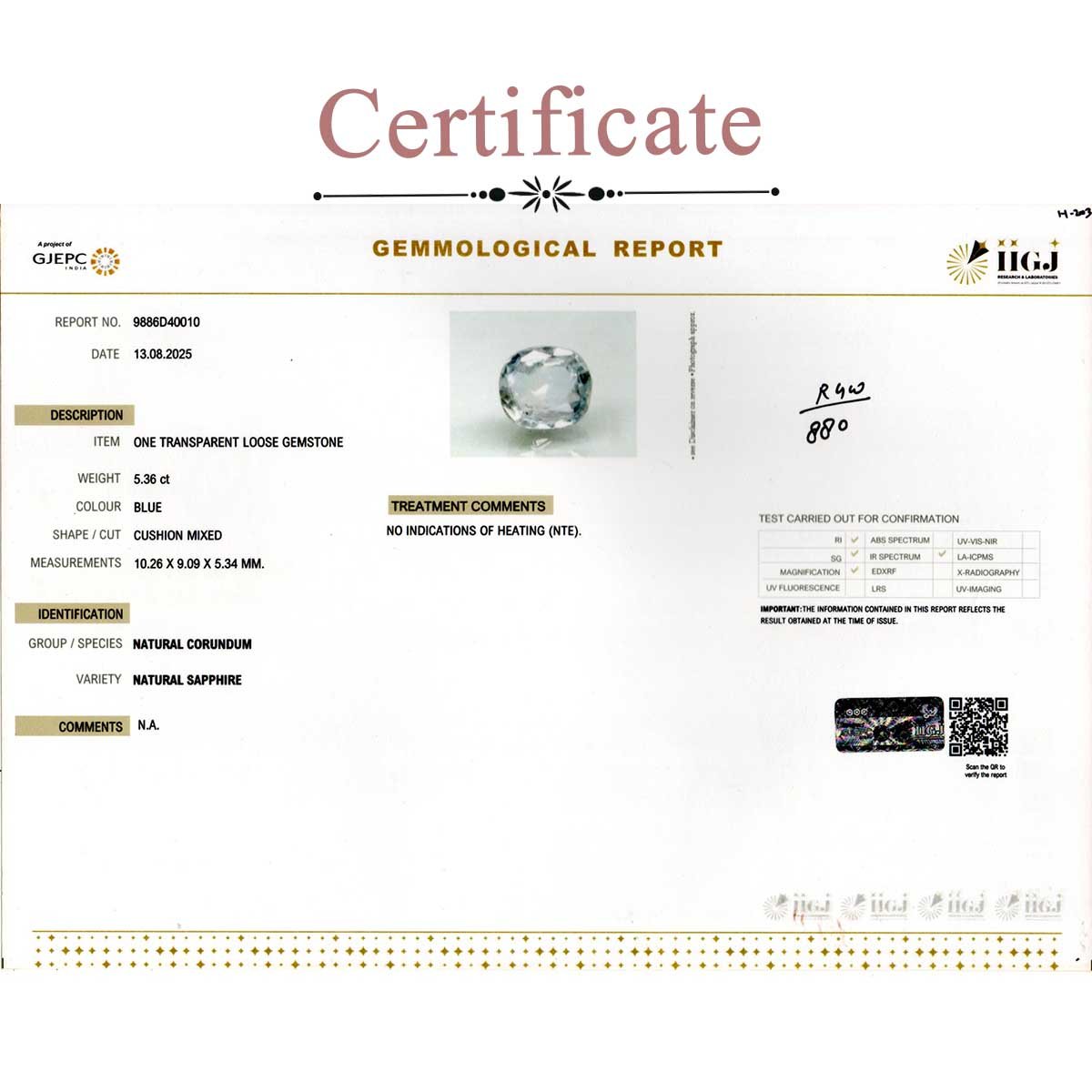 5.36 Carats Blue Sapphire ( 5.96 Ratti Neelam )