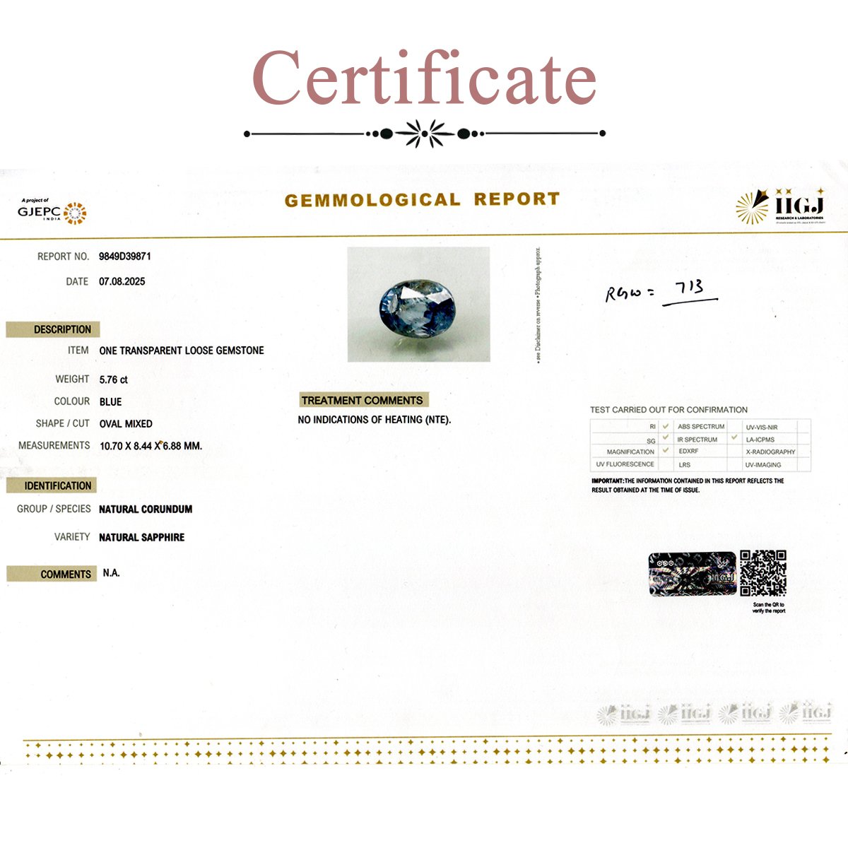 5.76 carats Blue Sapphire ( 6.4 ratti Neelam )