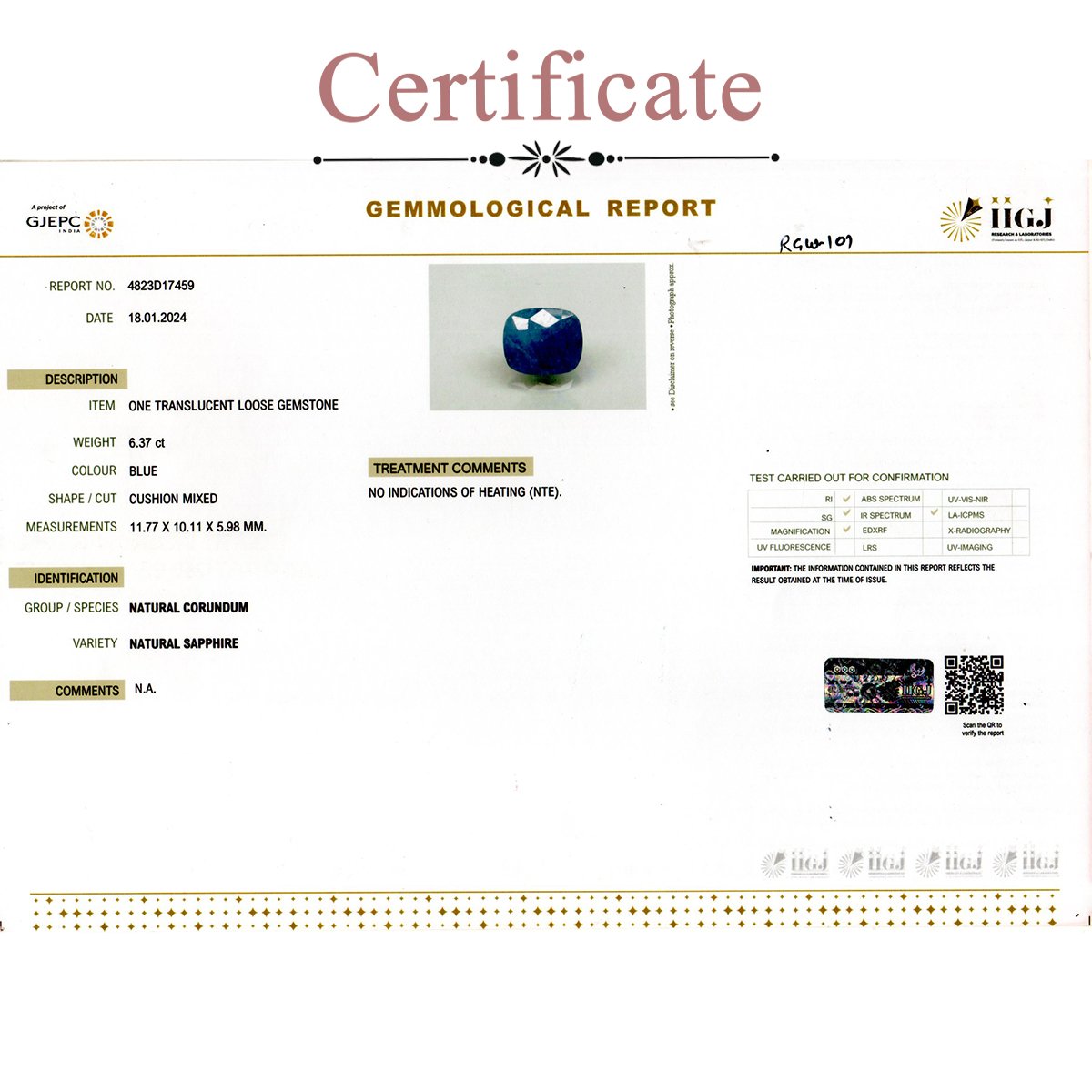 6.37 Carats Blue Sapphire ( 7.08 Ratti Neelam )