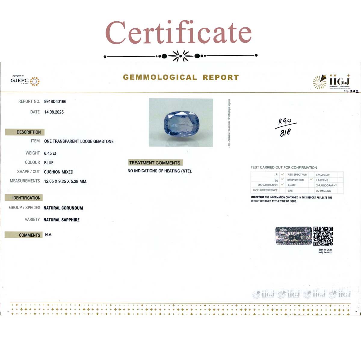 6.46 carats Blue Sapphire ( 7.18 ratti Neelam )