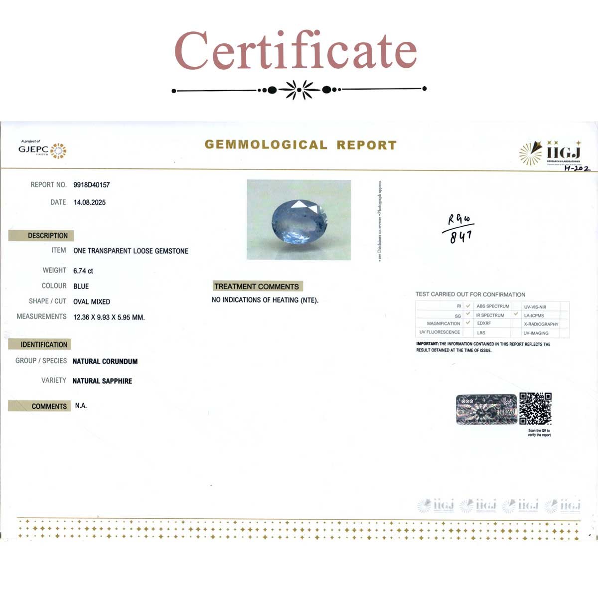 6.74 carats Blue Sapphire ( 7.49 ratti Neelam )