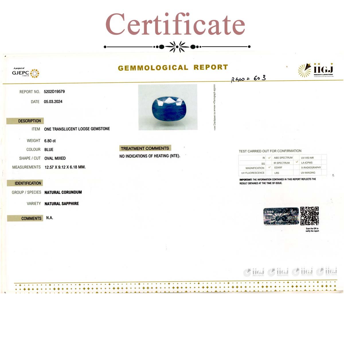6.8 Carats Blue Sapphire ( 7.56 Ratti Neelam )