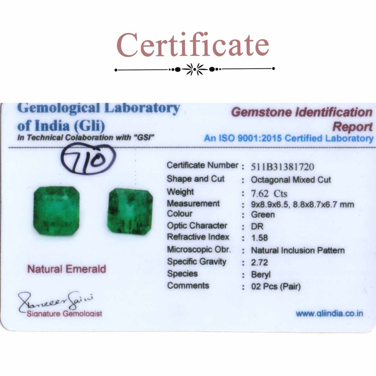 7.62 Carats Matching Emerald Pair ( 8.47 Ratti )