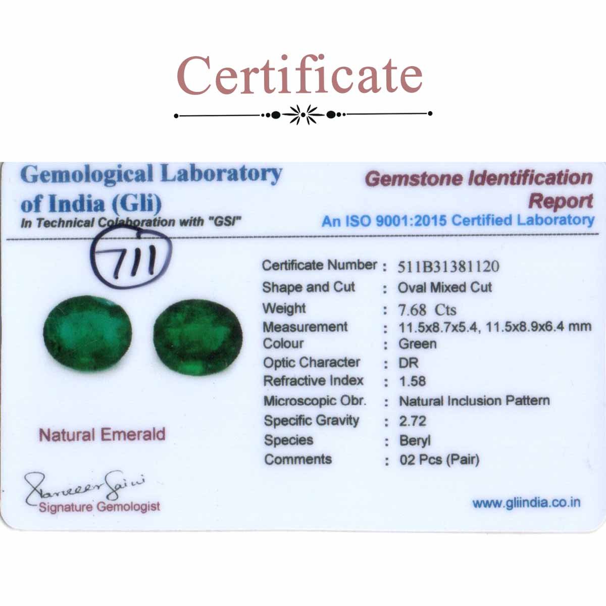 7.62 Carats Matching Emerald Pair ( 8.47 Ratti )