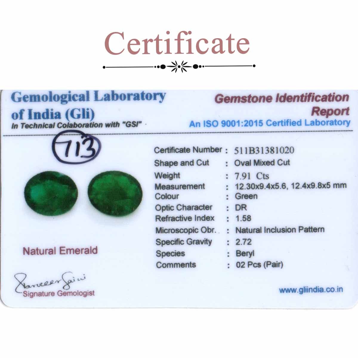 7.85 Carats Matching Emerald Pair ( 8.72 Ratti )