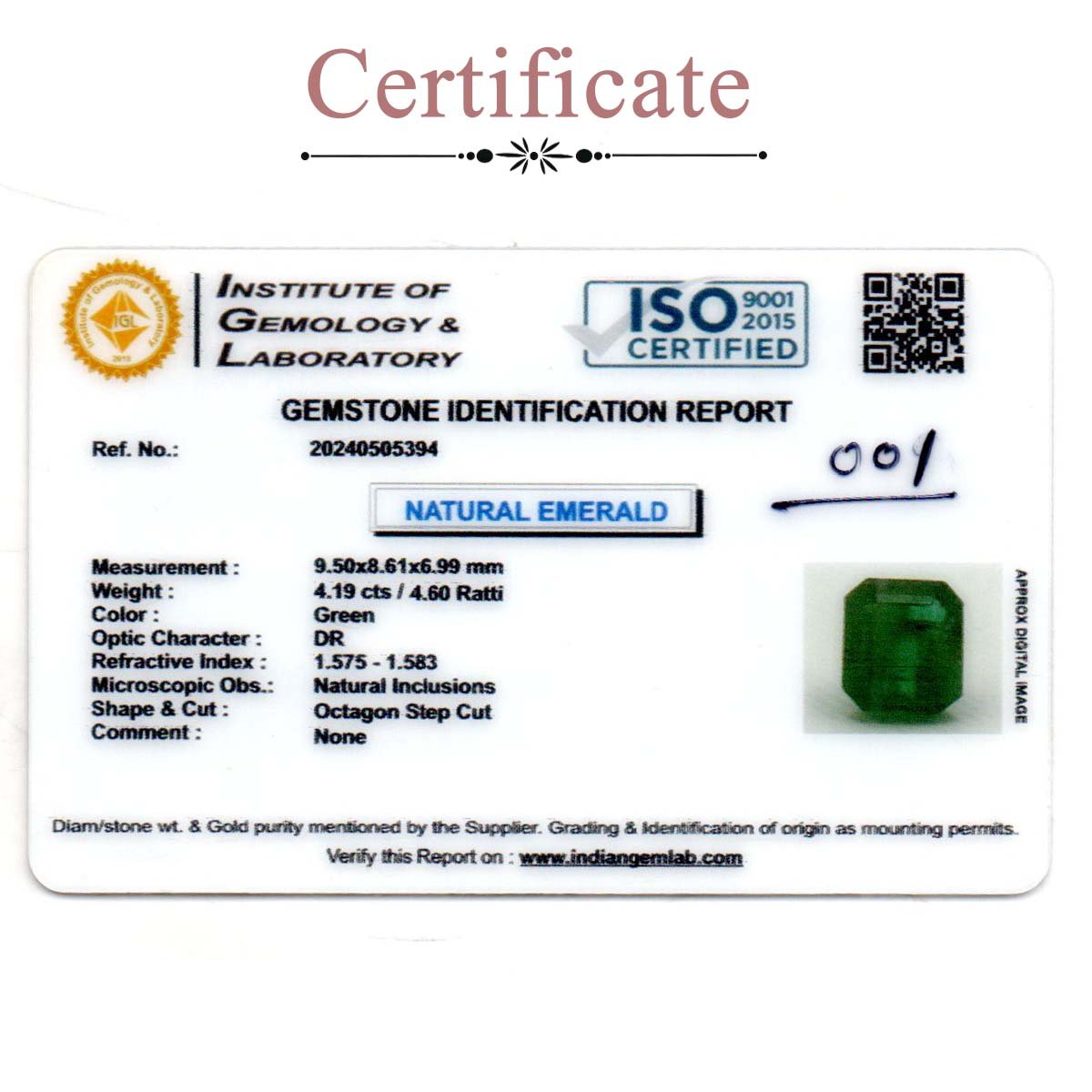 4.61 carats Emerald ( 5.07 ratti Panna )