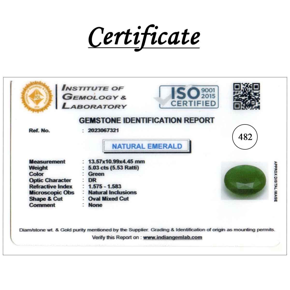5.03 Carats Emerald ( 5.53 Ratti Panna )