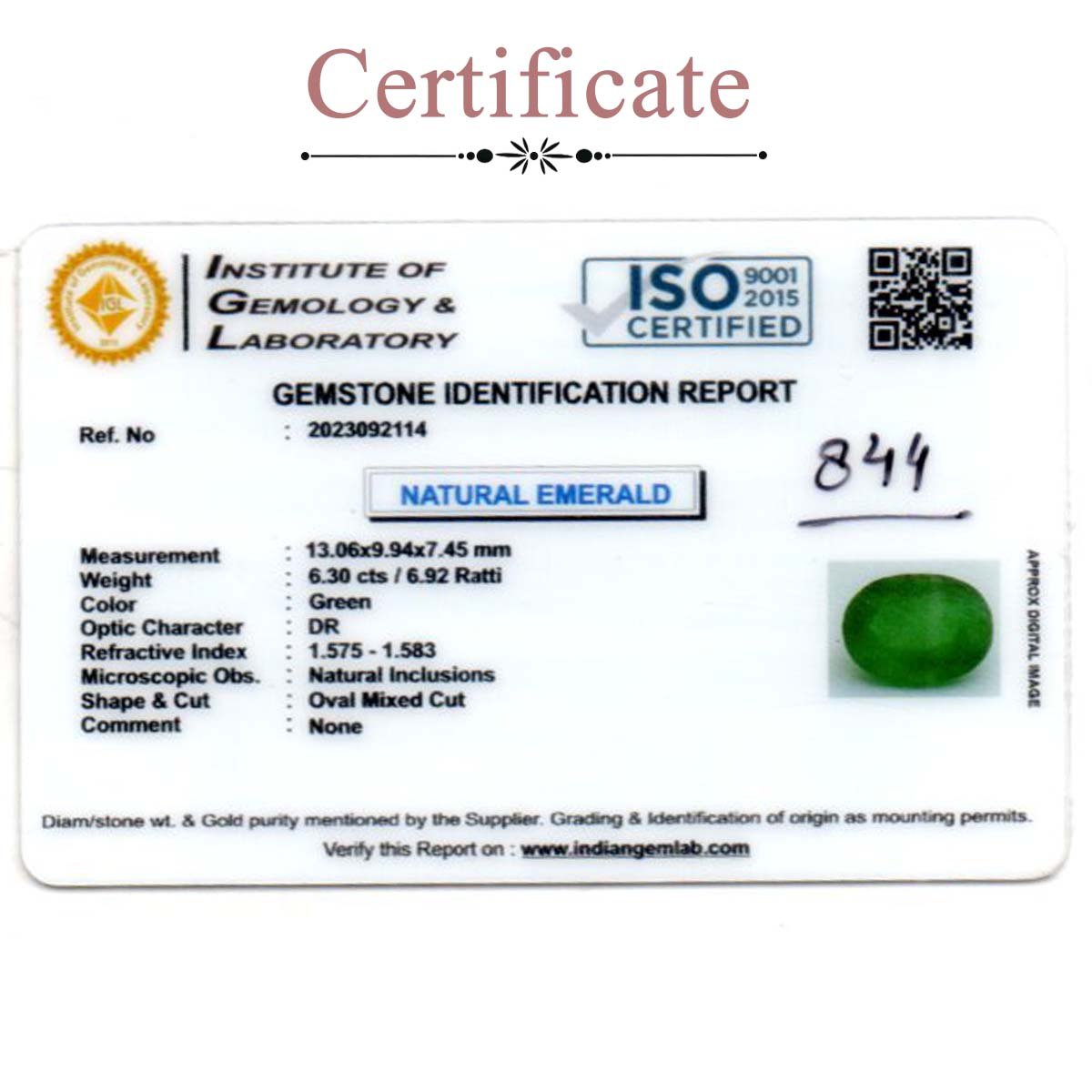 6.3 carats Emerald ( 6.92 ratti Panna )