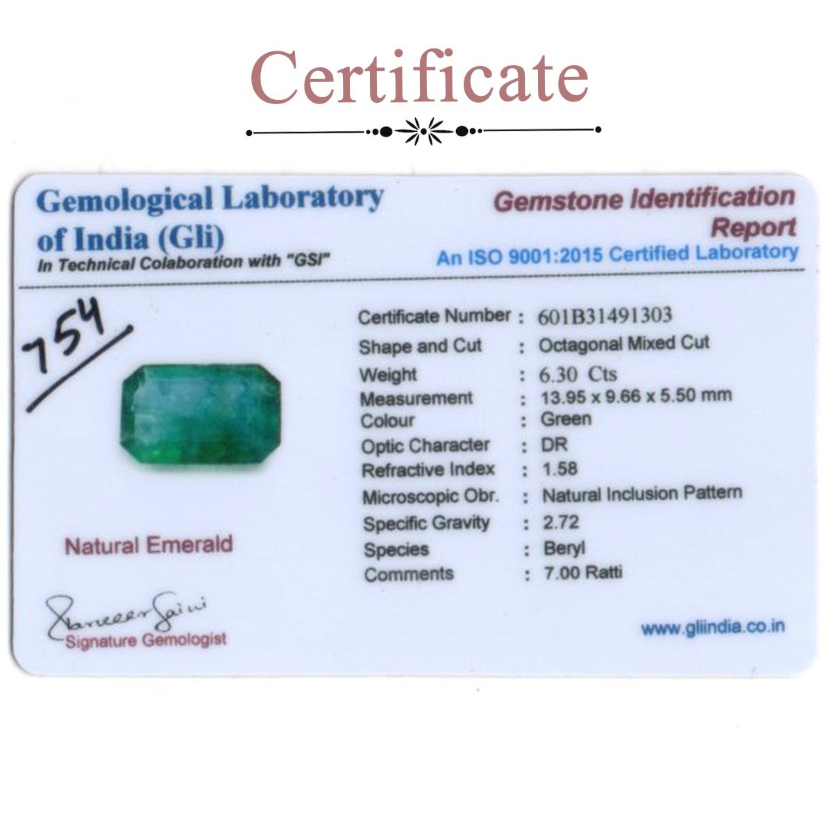 6.3 carats Emerald ( 7 ratti Panna )