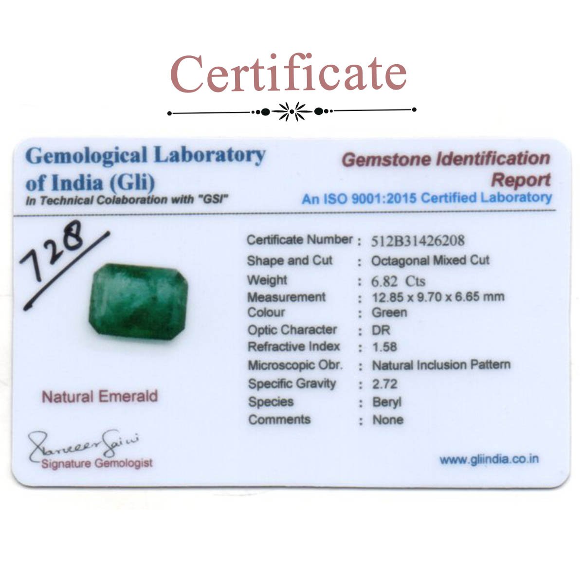 6.82 carats Emerald ( 7.58 ratti Panna )