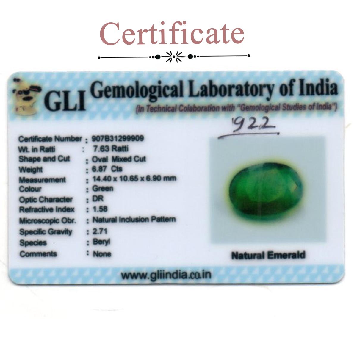 6.87 carats Emerald ( 7.63 ratti Panna )