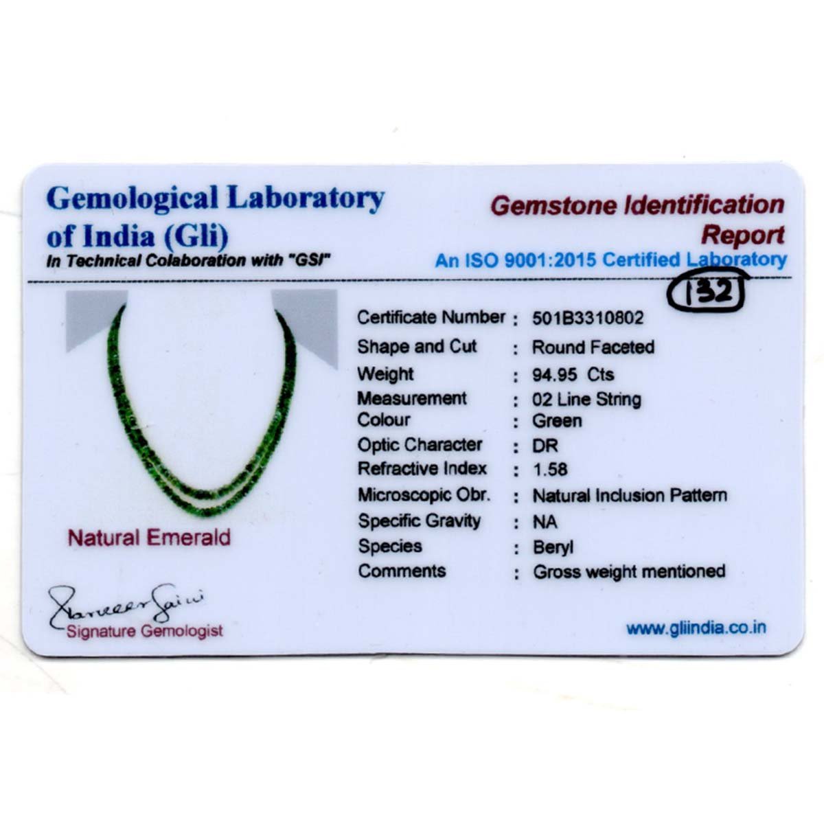 Certified Emeralds Cut Beads Necklace Mala ( Double Lines Green )