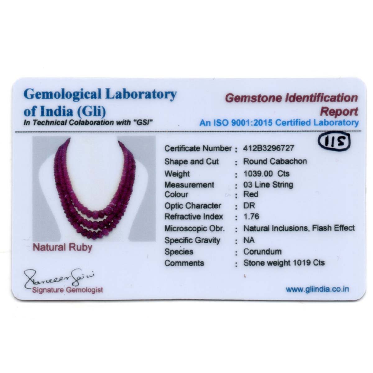 Natural and Certified Ruby Kharbuja Beads Necklace ( 3 Lines Pink )