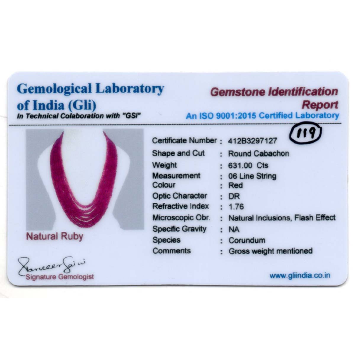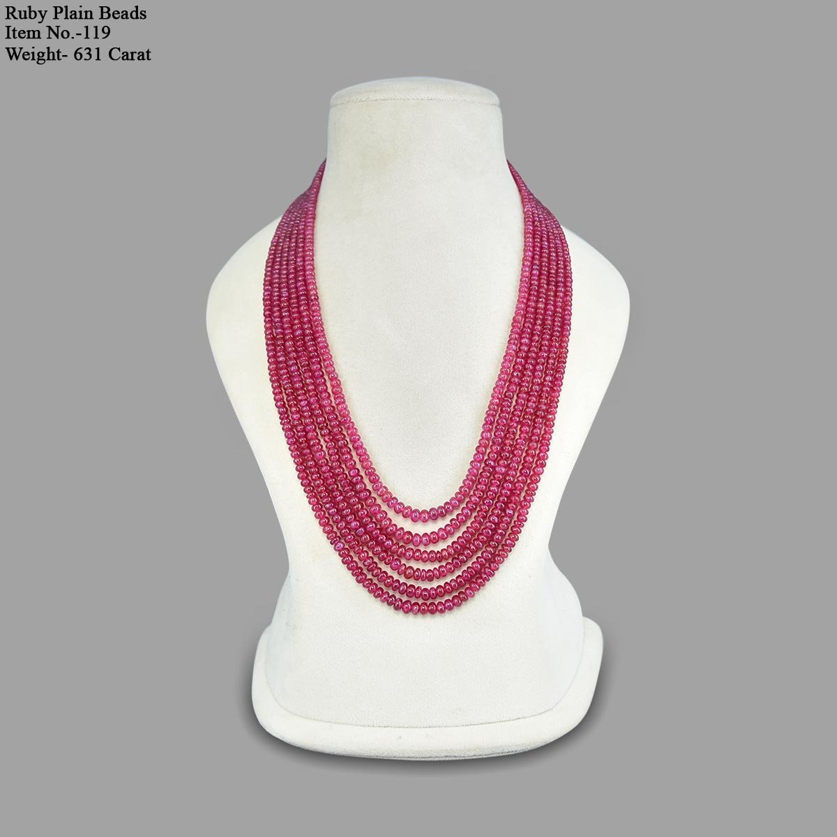 Natural and Certified Ruby Plain Beads Necklace ( 6 Lines Pink )