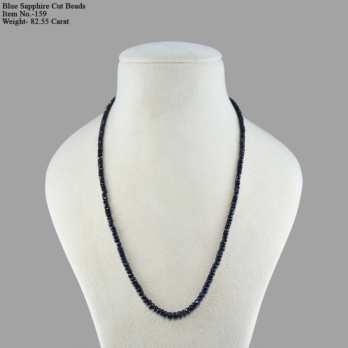 Natural Blue Sapphire Cut Beads Necklace Mala ( Single Line Blue )