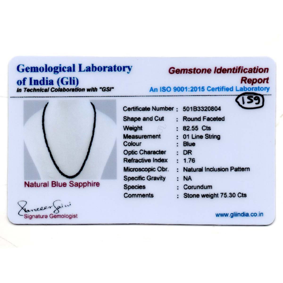Natural Blue Sapphire Plain Beads Necklace Mala ( Single Line Blue )