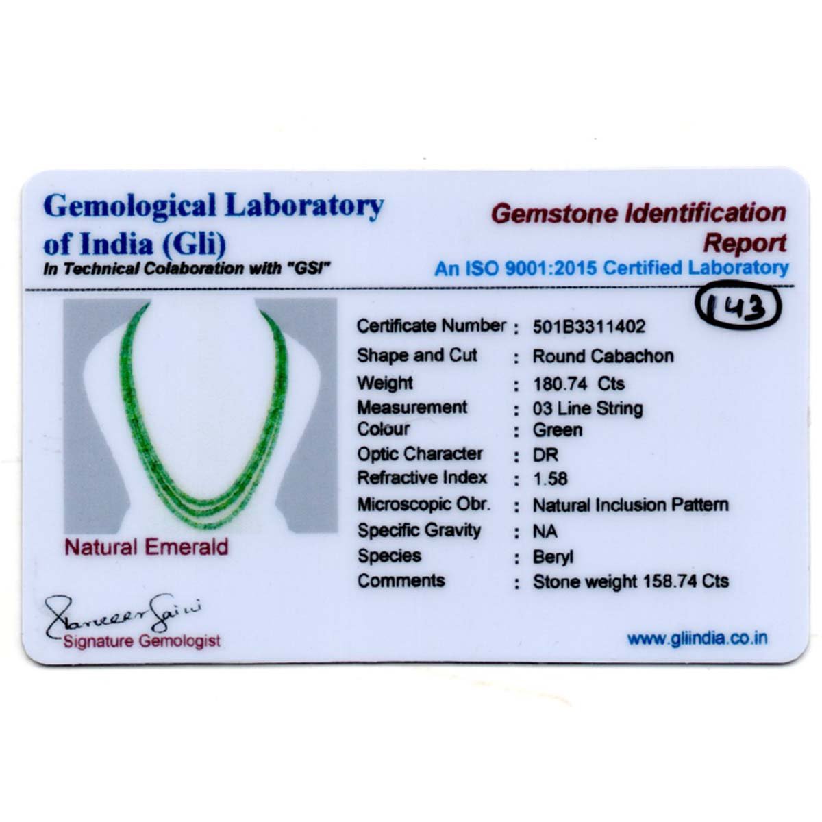 Certified Emeralds Cut Beads Necklace Mala ( 3 Lines Green )