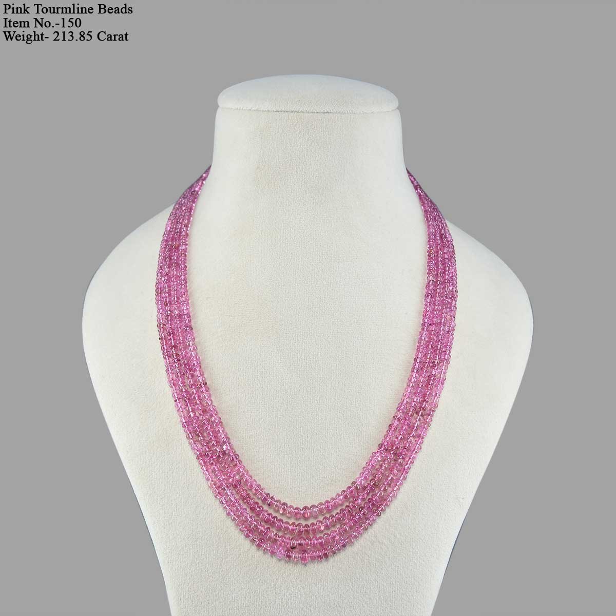 Natural Pink Tourmaline Beaded Necklace ( 4 Lines )