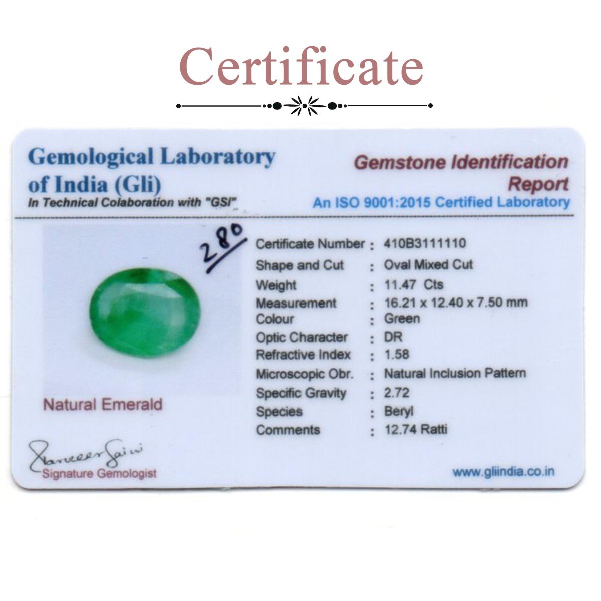 11.47 Carats Emerald ( 12.74 Ratti Panna )
