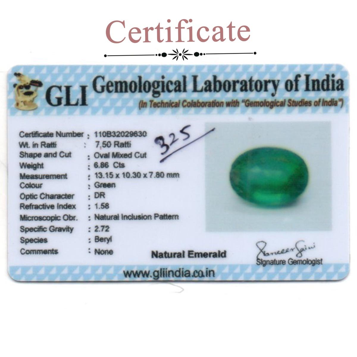 6.77 Carats Emerald ( 7.52 Ratti Panna )