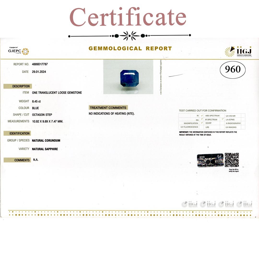 8.45 Carats Blue Sapphire ( 9.39 Ratti Neelam )