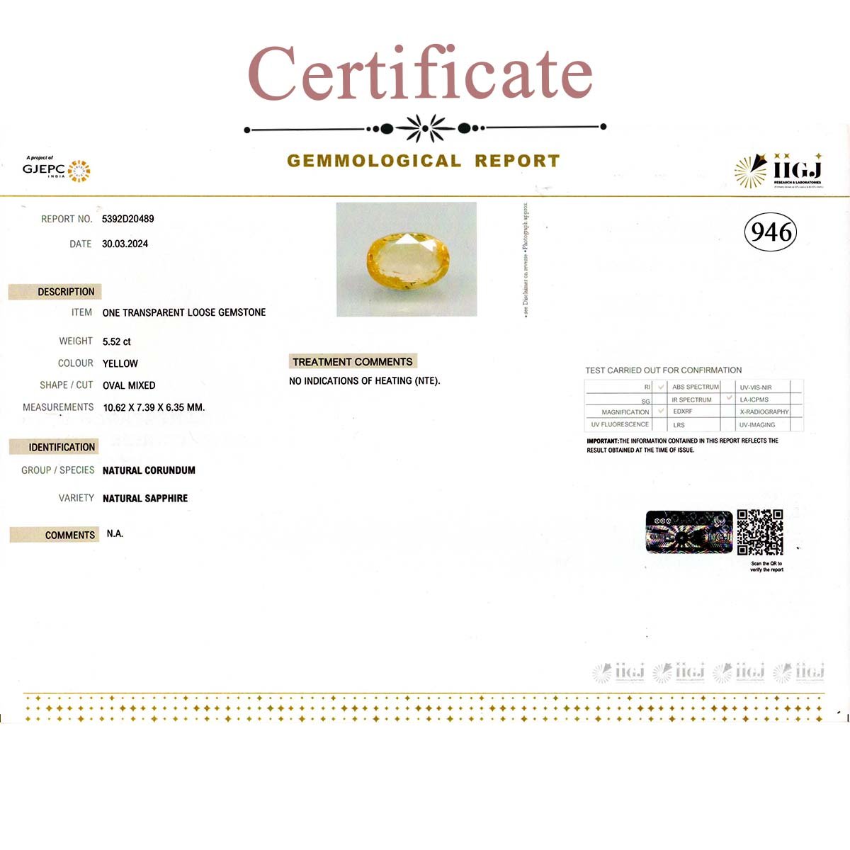 5.52 Carats Yellow Sapphire ( 6.13 Ratti Pukhraj )