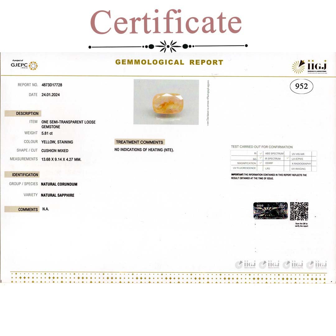 5.91 Carats Yellow Sapphire ( 6.57 Ratti Pukhraj )