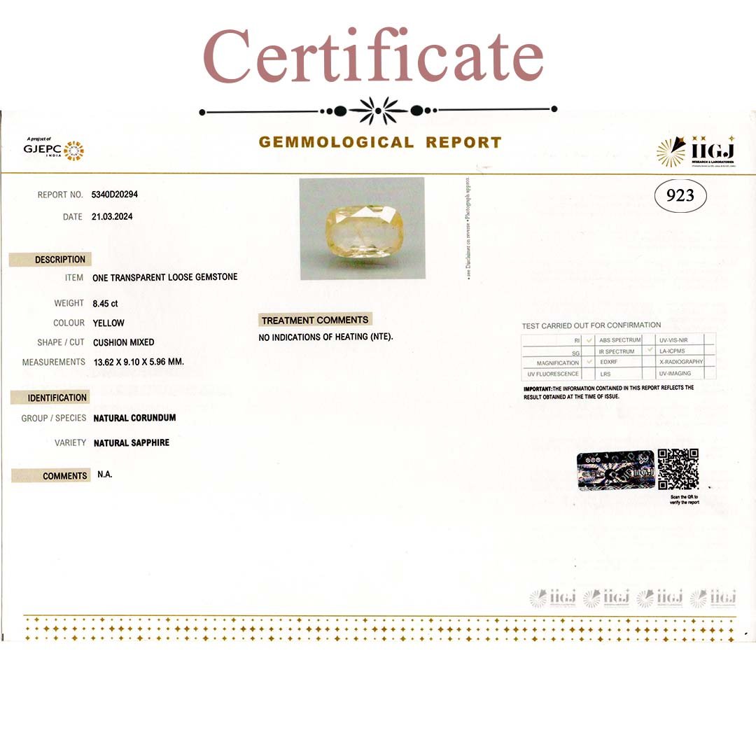8.47 Carats Yellow Sapphire ( 9.41 Ratti Pukhraj )
