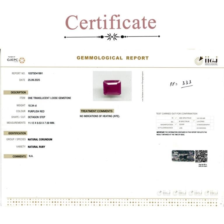 10.34 carats Ruby ( 11.49 ratti Manik )