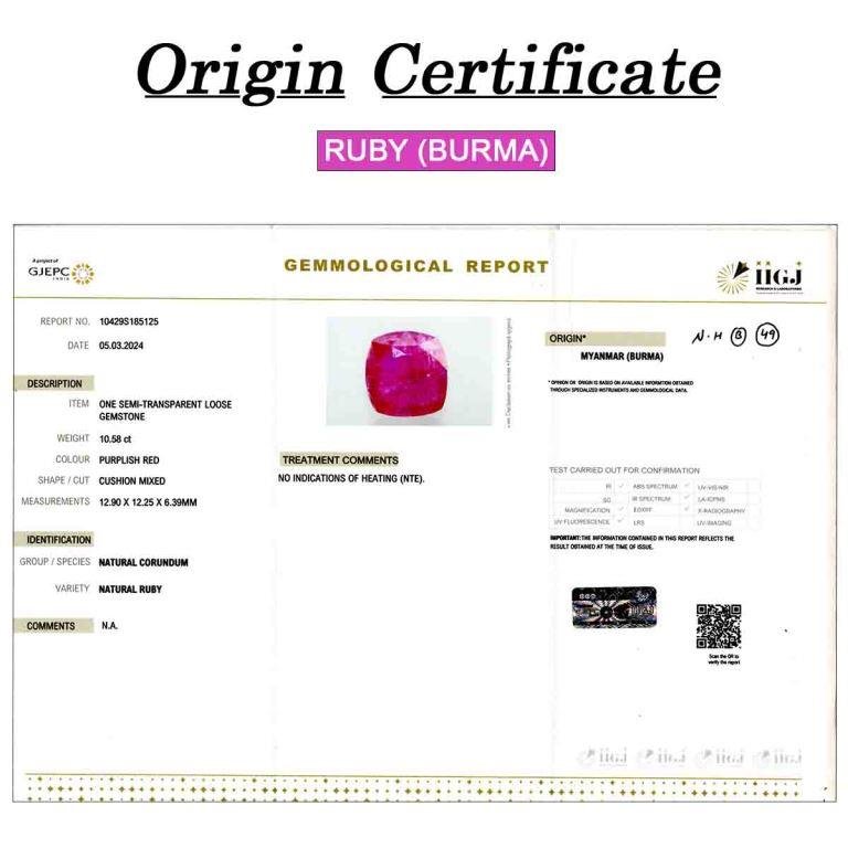 10.58 carats Ruby ( 11.76 ratti Manik )