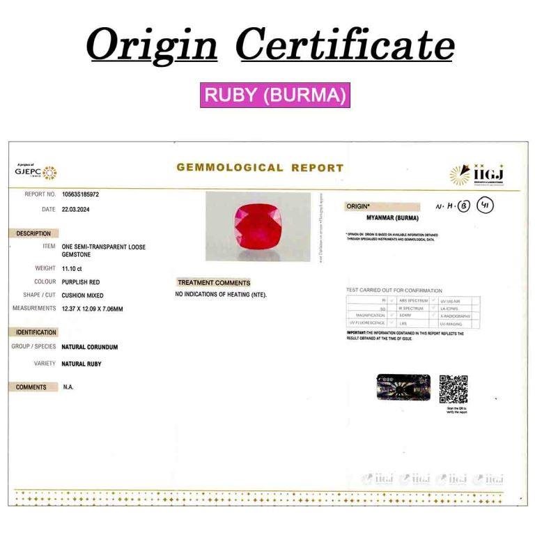 11.1 carats Ruby ( 12.33 ratti Manik )