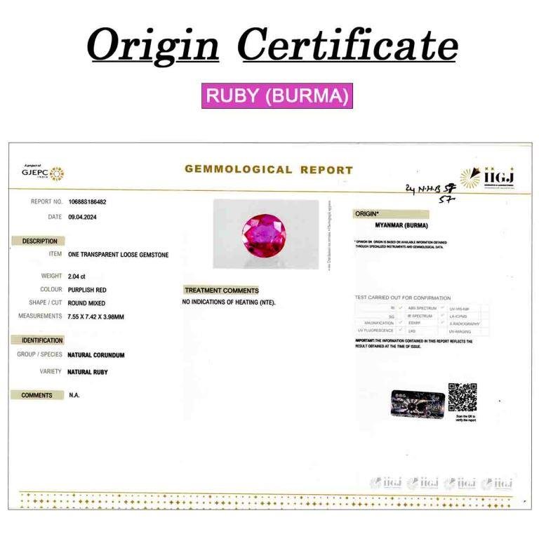 2.04 carats Ruby ( 2.27 ratti Manik )