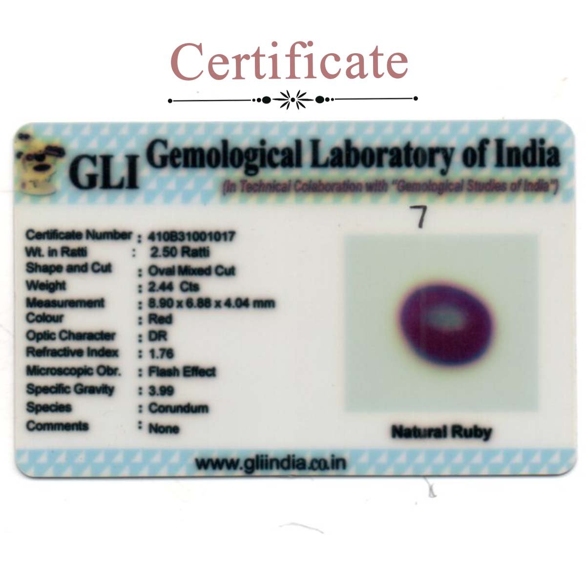 2.44 carats Ruby Heated ( 2.5 ratti Manik )