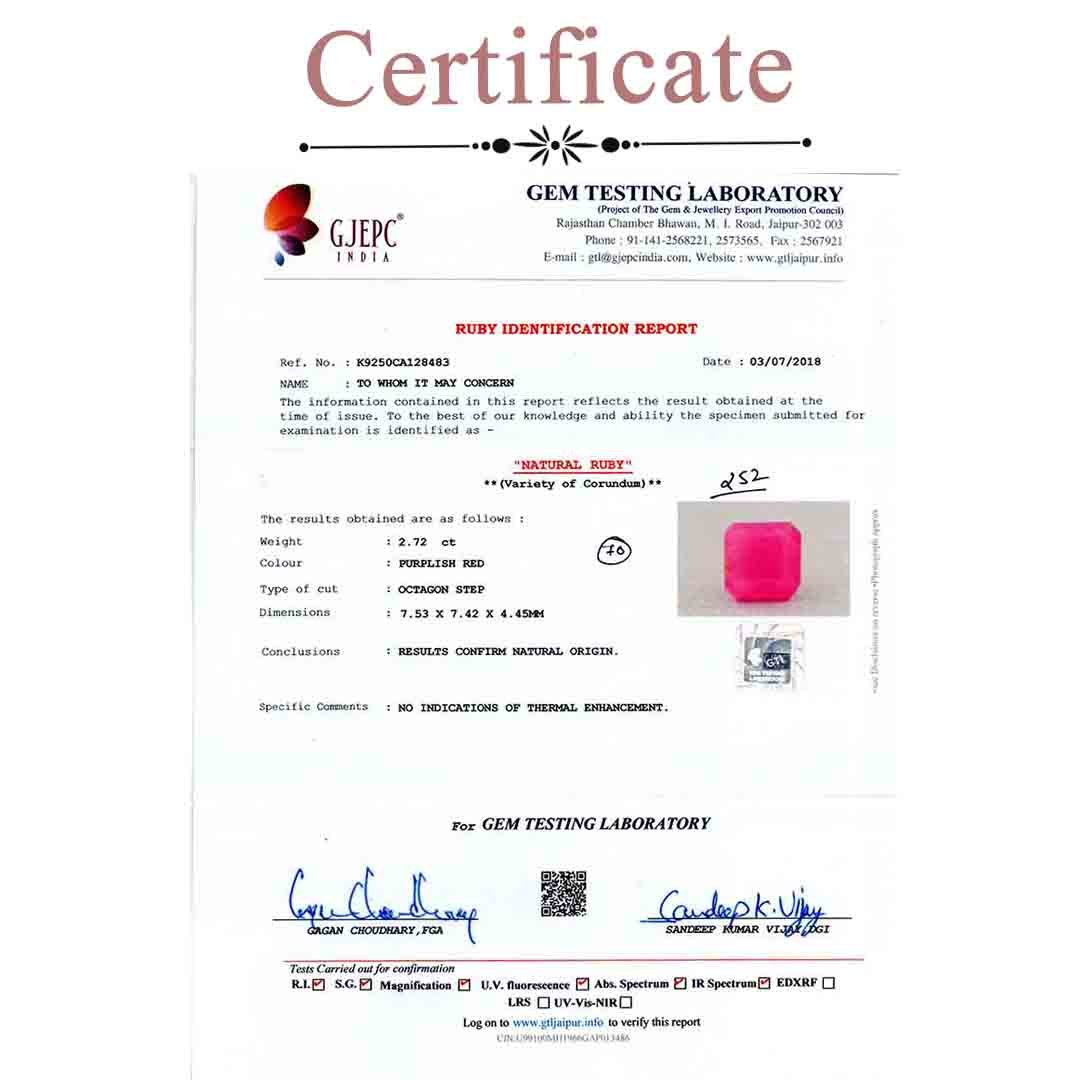 2.72 Carats Ruby ( 3.02 Ratti Manak )