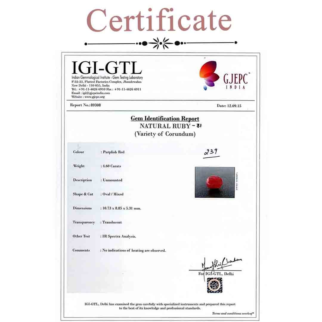 4.6 Carats Ruby ( 5.11 Ratti Manak )
