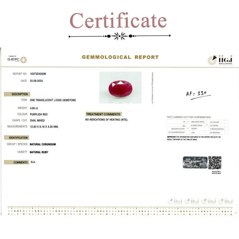 4.8 carats Ruby ( 5.33 ratti Manik )