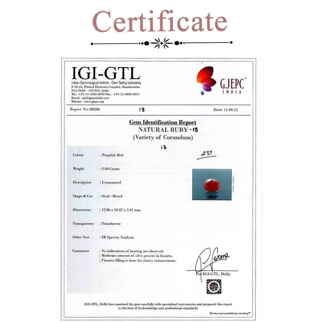 5.04 Carats Ruby ( 5.6 Ratti Manak )