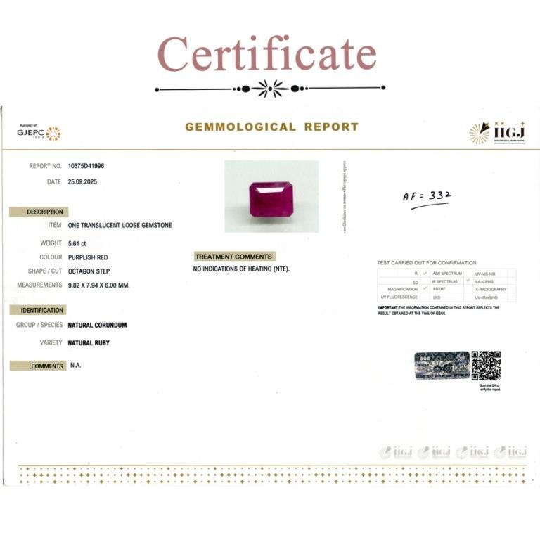 5.61 carats Ruby ( 6.23 ratti Manik )
