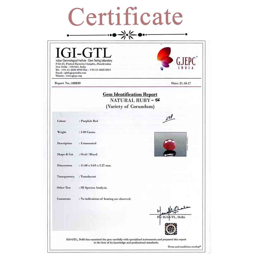 5 Carats Ruby ( 5.56 Ratti Manak )